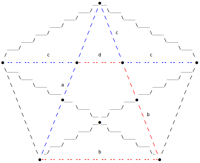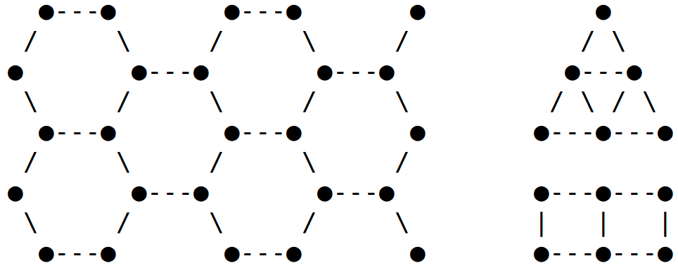 ●---● ●---● ● ● / \ / \ / / \ ● ●---● ●---● ●---● \ / \ / \ / \ / \ ●---● ●---● ● ●---●---● / \ / \ / ● ●---● ●---● ●---●---● \ / \ / \ | | | ●---● ●---● ● ●---●---●Bienenwabenmuster, 1+2+3=6 und 1·2·3=6 (png)
