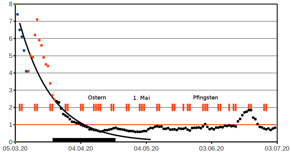 [3] 16.04.2020: Zwischenzeitlich behauptet das Robert-Koch-Institut, der R0-Faktor sei schon am 20. März unter 1 gesunken. Haben sich die Berechnungen oder nur die Propagandaziele geändert?